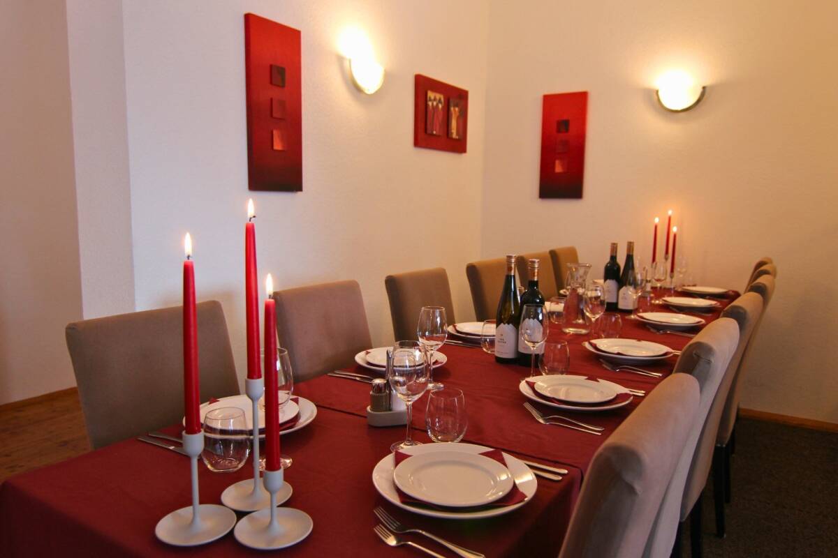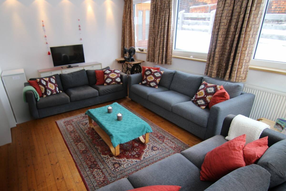 Catered Chalet Angela-Arlberg is situated in a peaceful location on a quiet cul-de-sac, ensuring minimal traffic and no noise disturbance. The chalet features a modern, bright living room with comfortable sofas, where you can unwind after a day on the slopes of Ski Arlberg. Adjacent to this is the dining area, where you can enjoy a extensive breakfast in the morning and a delicious three-course dinner in the evening, prepared by your personal chalet hosts.