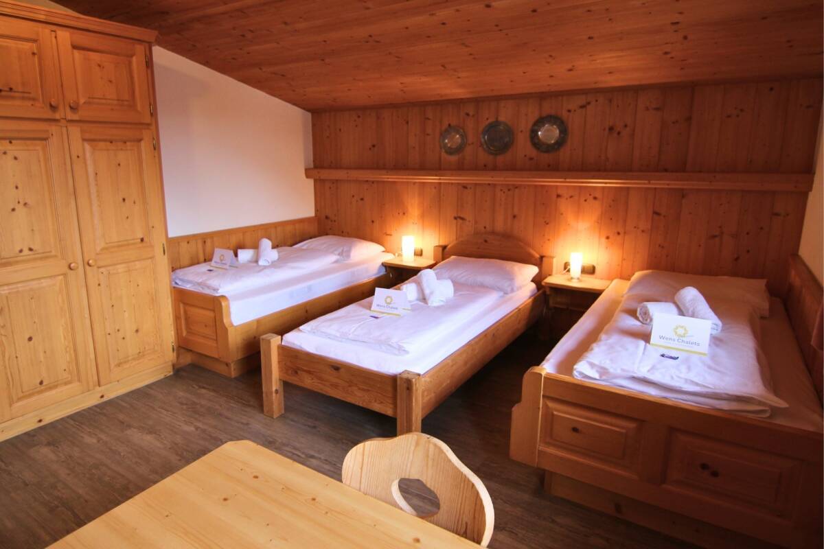 The six bedrooms are located on the first and second floors of the chalet and are spacious, each with its own bathroom for added comfort and privacy. One of the rooms is a triple room, and it is also possible to place an extra bed in another room if desired. The owner has a separate apartment within the chalet with a private entrance, ensuring that you, as a guest, enjoy complete privacy.
