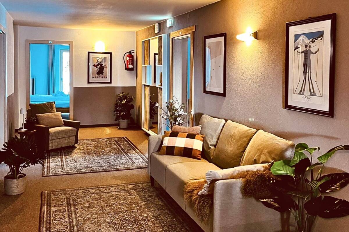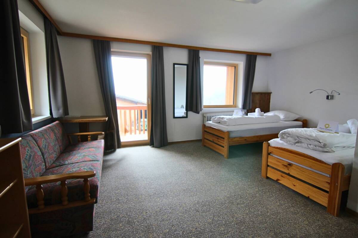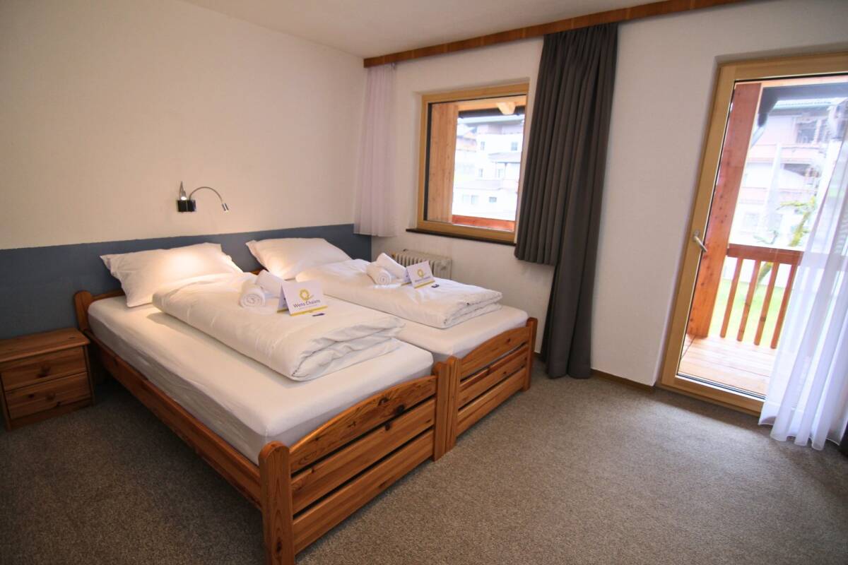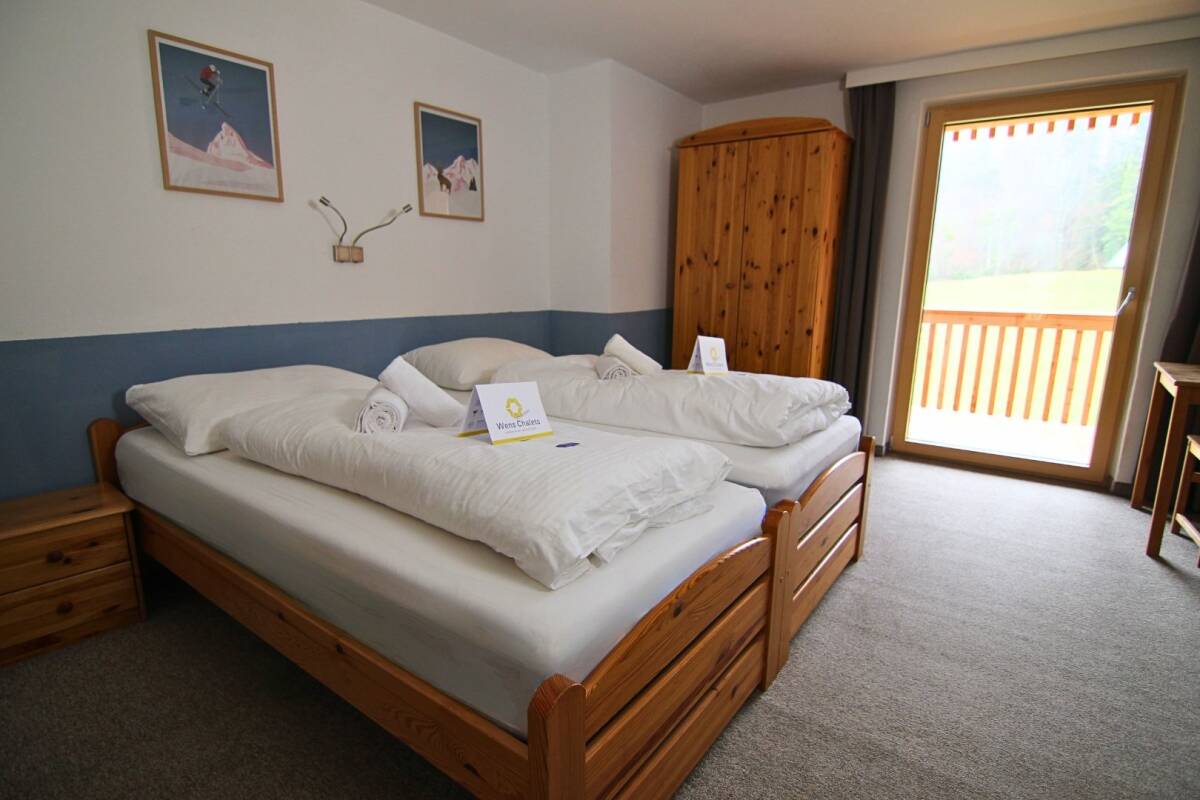 The chalet spans four floors. On the top three floors, you'll find 12 comfortable bedrooms, including two quad rooms, one triple room, and nine double rooms. Each room comes with a private bathroom and toilet, and most also feature a recently renovated balcony with stunning mountain views.