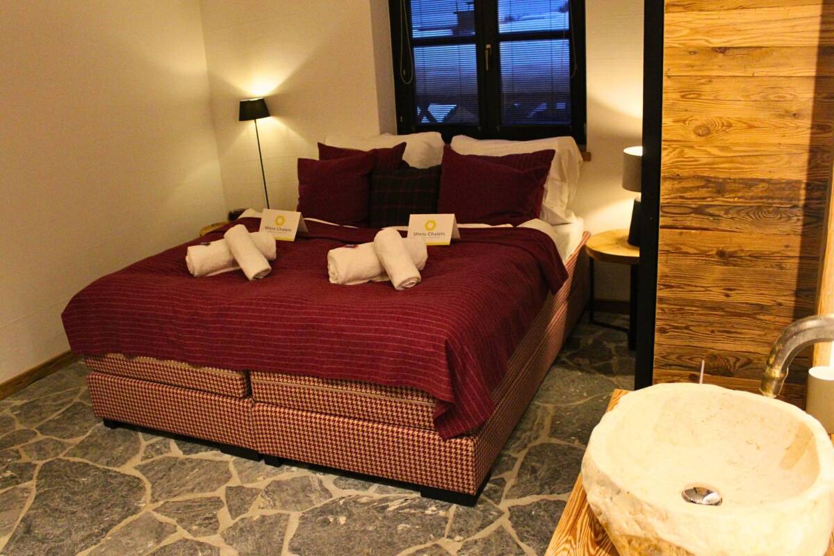 This catered chalet is arranged as follows: on the top floor is the 'master bedroom' for two people, equipped with a wood stove, sauna, shower, and bath. Additionally, you have access to a shared balcony. Next to the master bedroom is a double room with an ensuite bathroom, which also has access to the shared balcony. On the first floor, you will find the dining room and a spacious living room with a balcony, including an open fire and television. There are also two double rooms with a shared bathroom. The kitchen is also located here, the domain of your personal chalet hosts. On the ground floor, there are three more double rooms. One of these rooms has a Turkish steam cabine with a shower and another sauna. The other double rooms are located on the opposite side of the corridor and each has its own bathroom. Book this luxurious group accommodation quickly and experience an unforgettable skiing holiday in Wagrain.