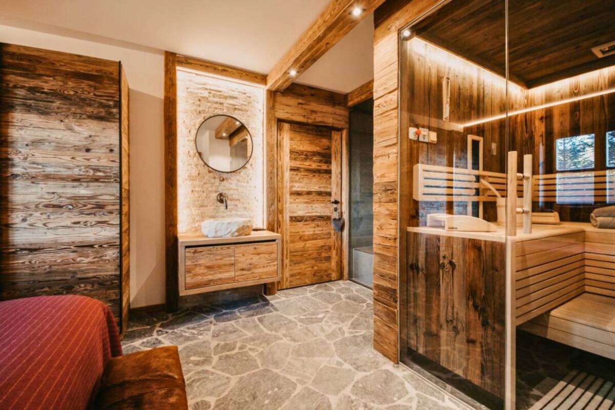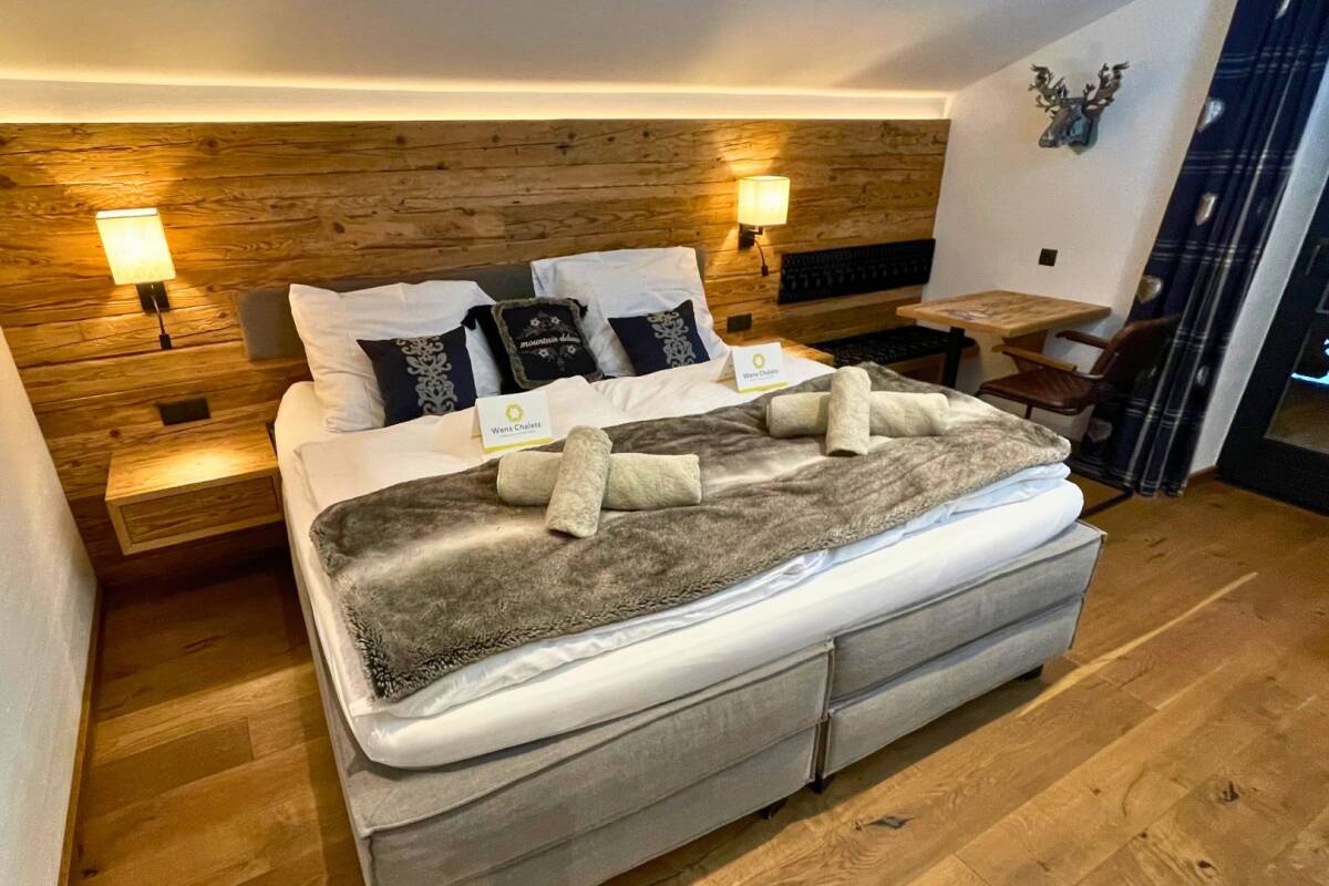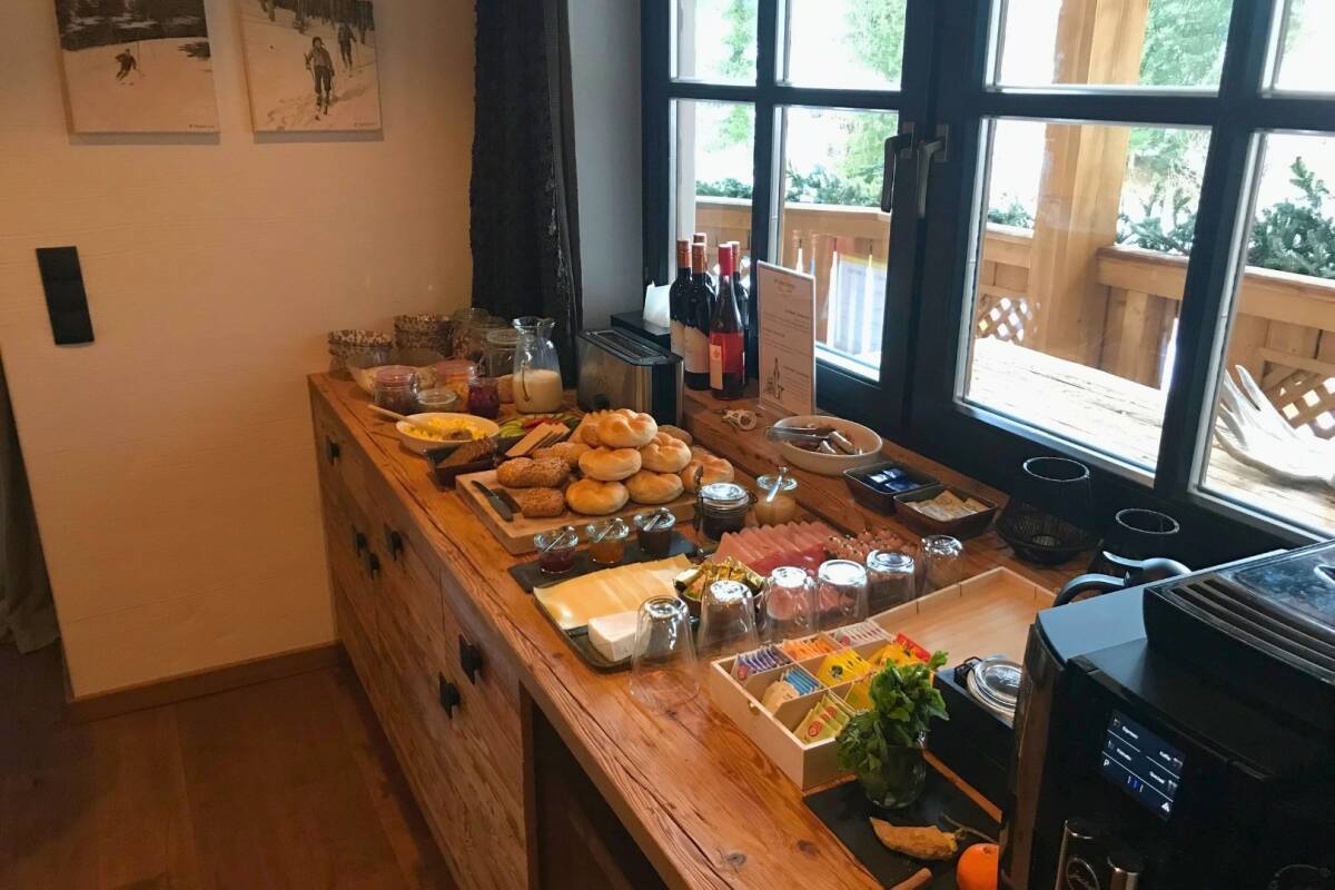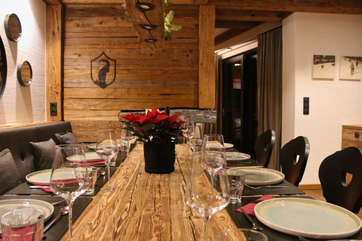 At chalet Joy, your day starts with a delicious breakfast in the cosy dining room, prepared by your chalet hosts. Then you can head straight to the slopes, while your hosts tidy up after breakfast! After a day of fun in the snow, you are welcomed back to your chalet from 4 pm, where you can safely store your skis in the heated ski room. Now it's time to relax. You have the choice of how to do so. Would you like to spend time with the whole group in the cosy and spacious living room with an open fire? Or would you prefer to sit on the balcony and enjoy the stunning view in the sunshine? Or perhaps you would rather unwind in one of the saunas or the Turkish steam cabine? It doesn't matter, as you won't have to worry about anything for the rest of the evening. Our selected chalet hosts are already busy preparing the three-course dinner.